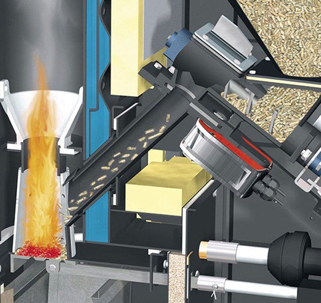 O P4 apresenta vantagens significativas desde o momento em que entra na sala das caldeiras. Graças ao seu design compacto, a montagem do Pellet P4 é extremamente simples, mesmo em espaços pequenos. Todos os componentes são pré-cabeados. Se necessário, os componentes podem ser desmontados em poucos segundos. A introdução na sala das caldeiras pode ser feita em partes.